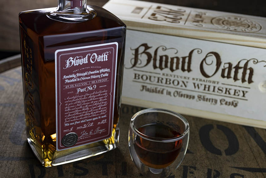 “Blood Oath Pact 9 contains three great bourbons, and the Oloroso Sherry cask finish has resulted in a deep, dark amber liquid with long legs,” said Rempe. “The Oloroso Sherry casks also bring out tasting notes of sweet sherry with hints of ripe fruit on the nose, as well as flavor notes highlighted by ripe fruits including figs, plums and raisins, with notes of molasses, chocolate and tobacco. This bourbon also provides a long-lasting finish characterized by fruit notes and complemented by hints of spicy oak. I’m proud to share Blood Oath Pact 9 with bourbon lovers.”